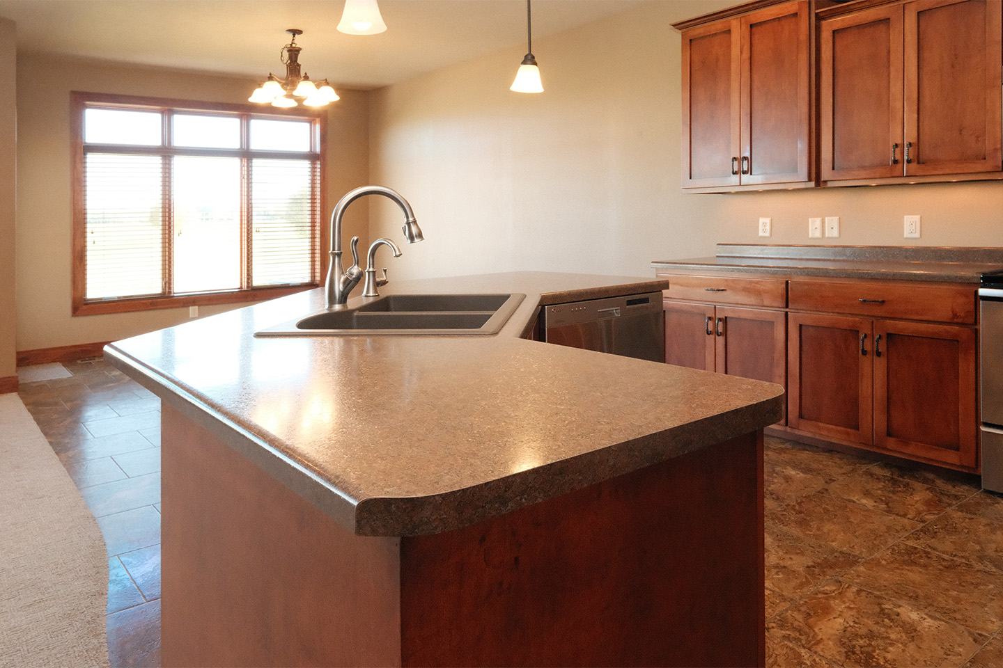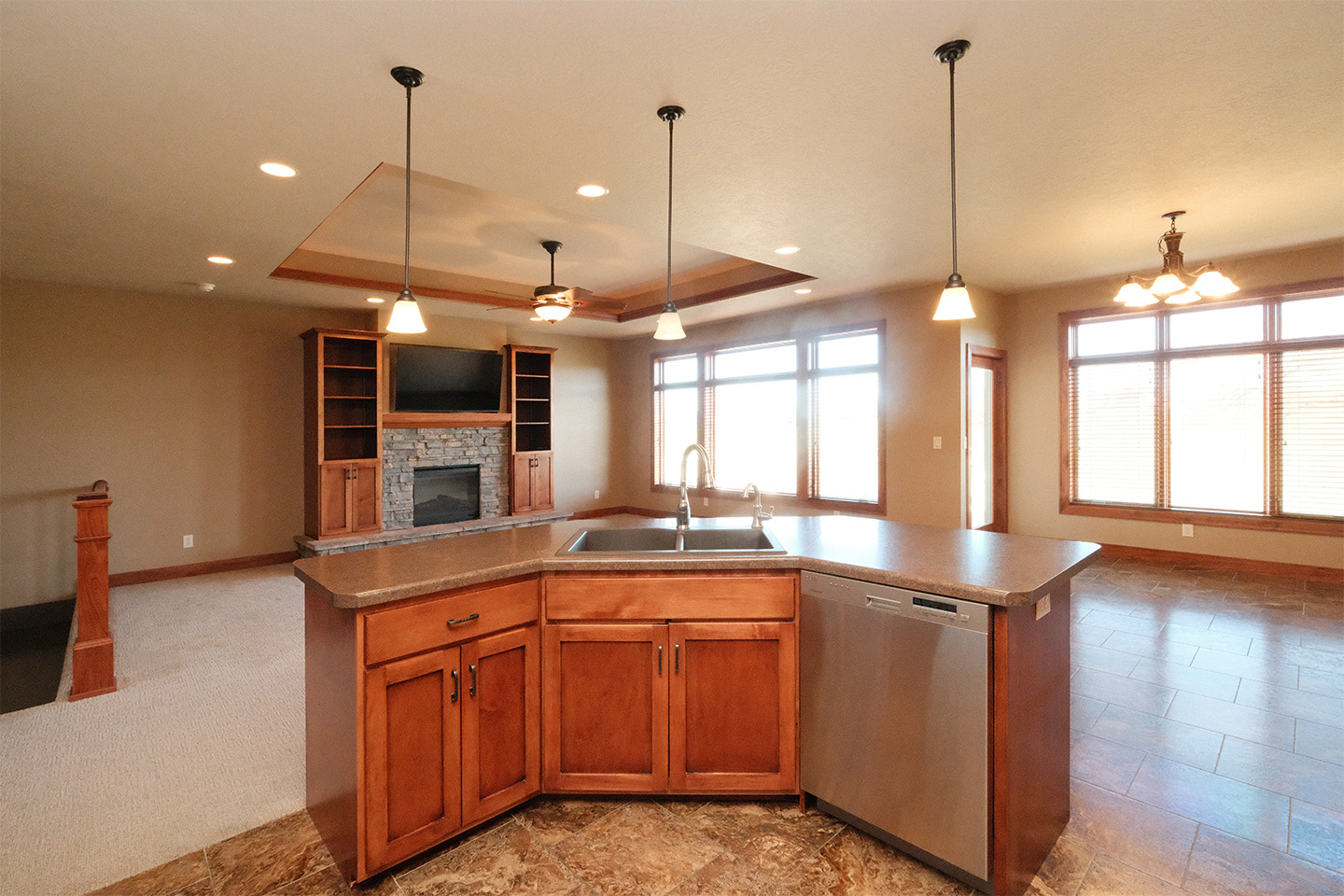 ¡Vistas tranquilas y serenas al campo de golf, una vida funcional y sencilla, y una ubicación inmejorable se ofrecen en este nuevo condominio en Sioux Center! Ubicado en el desarrollo Summerset Condos at the Ridge, este condominio de 149 metros cuadrados (1600 pies cuadrados) ofrece 3 dormitorios, 2.5 baños y un práctico garaje adjunto para 2 autos. Este condominio le da la bienvenida a casa con una atractiva fachada, un jardín consolidado, una acogedora entrada y vestíbulo, y hermosas vistas. La espaciosa planta principal cuenta con una amplia sala de estar con chimenea eléctrica de piedra y muebles empotrados, un funcional comedor con acceso a la terraza, una amplia cocina de concepto abierto con una gran isla y mucho espacio de almacenamiento, un medio baño para visitas, la suite principal con baño completo, armario para ropa blanca y vestidor, además de un práctico lavadero con amplio espacio de almacenamiento y despensa. El sótano completo está terminado e incluye una amplia sala de estar, un dormitorio, un baño completo, un estudio/oficina y un amplio trastero. **Sujeto a las cuotas de la Asociación de Propietarios de Summerset y las tarifas del campo de golf de Ridge.