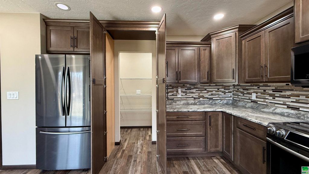 If you are looking for a newer build home in the Hawarden area, then this one is for you! The builder spared no expense when putting this together. This ranch home offers over 2700 square feet, and includes prime finishes throughout. The main floor is open between the kitchen and living room, with enough space to make it an eat-in kitchen. The main floor is outfitted with LVP, and newer carpet in the bedrooms and living room. The media wall boasts stacked brick, and a tasteful mantle. The kitchen includes a hidden walk-in pantry that leaves ample space for more food and storage! The newer appliances will stay with the home. Main floor laundry is situated just off of the kitchen. The sliding patio doors lead you out to your backyard, which is over half an acre, and the concrete patio. The master suite is located off of the living room, complete with 3/4 bathroom, and a walk-in closest. Two other bedrooms are on its opposite. There is a full bath located on the main floor, as well. The basement has yet another en suite, although no egress window, but has a walk-in closet, and a 3/4 bathroom attached. There is a large living space in the basement, great for any sort of entertainment. Off of the large living room, there is a bedroom with an egress, and on its opposite side sits another bedroom with an egress. The basement bathroom has double access from the en suite bedroom, and the large living room. Do not wait to call this home yours! Very quaint neighborhood, and you have plenty of privacy!