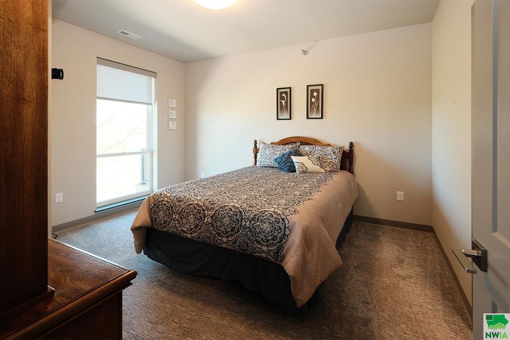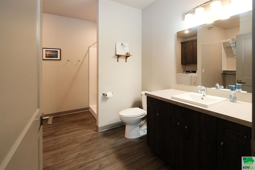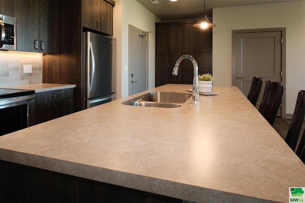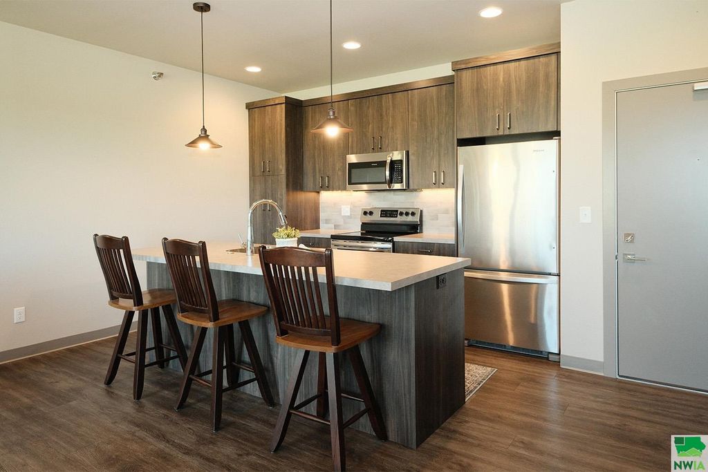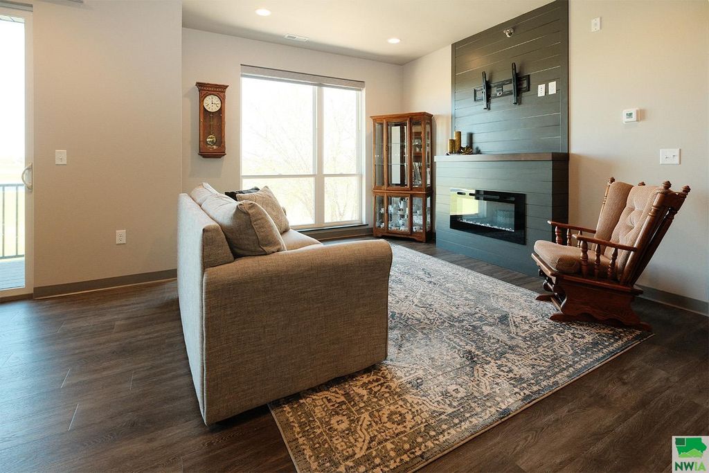 Tremendous opportunity to own a condo unit in Woodbridge Tower B! Unit #308 offers convenient features with simplified living; 1 bedroom, 3/4 bath and attached garage (#15). Situated on the 3rd floor with direct staircase access, this property offers a cozy 889 square feet of living space. Open concept kitchen with island & seating, built-in pantry and stainless steel appliances, functional living room with electric fireplace, dining room with built-in desk and deck access, primary bedroom with en-suite 3/4 bath, walk in closet and in-suite laundry! You won't want to miss the phenominal view from this unit - very picturesque and private! Built in 2020, Tower B features 55+ community living with main floor community room/kitchen, outdoor patio, exercise room, game/library, and direct biketrail access! Subject to Woodbridge HOA fees. All appliances included and move in ready!