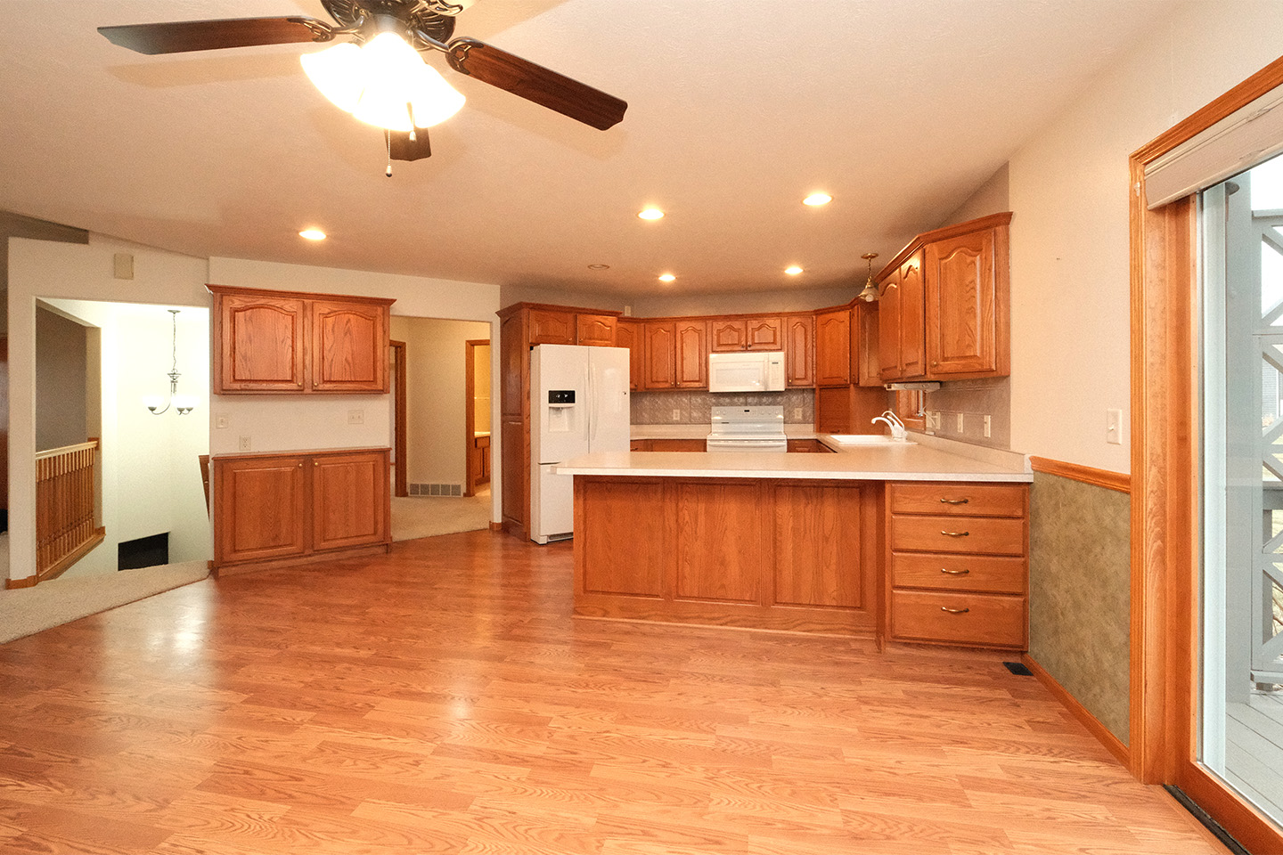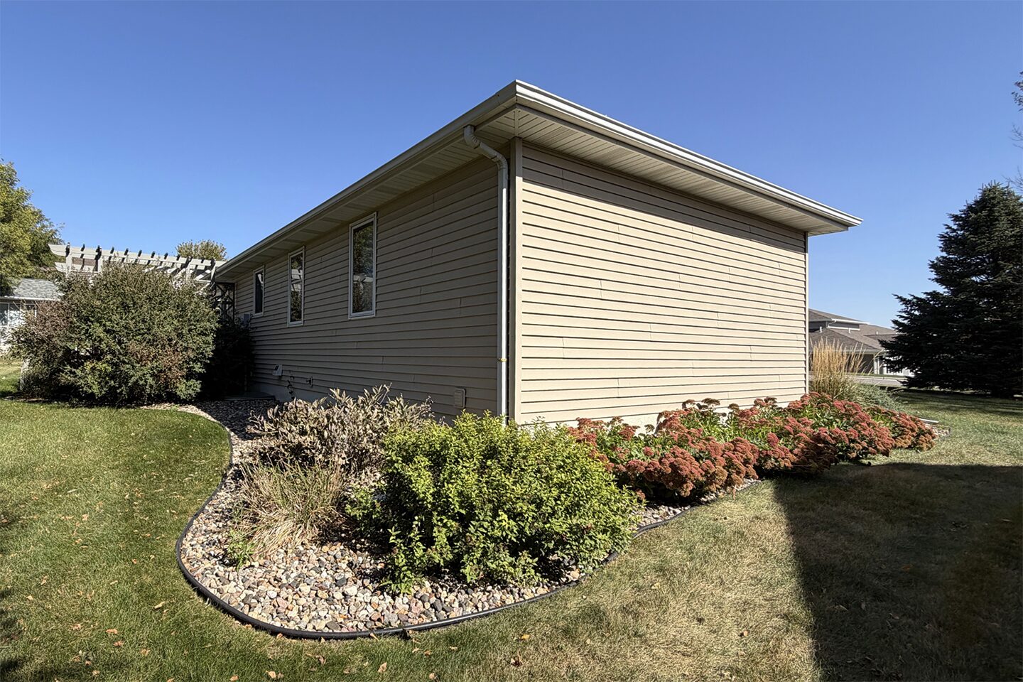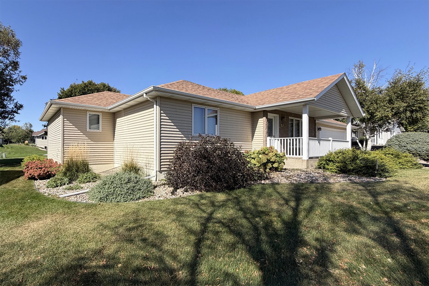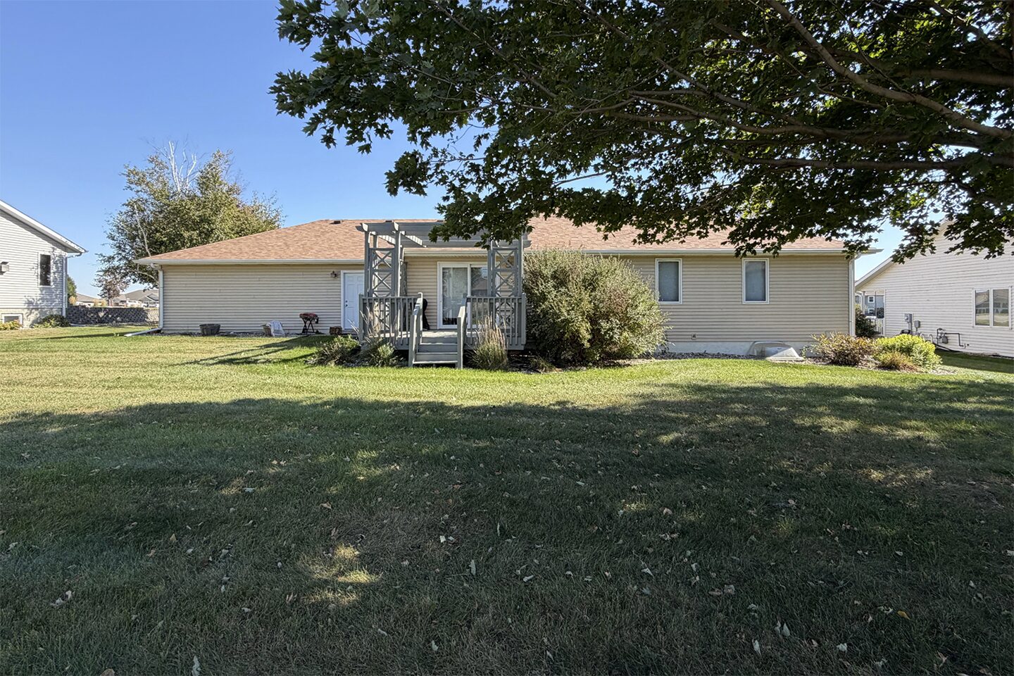 Immaculate and cozy describe this ranch home to a T! Located on the southeast side of Sioux Center, and within steps of schools, parks and bike trail access, this home offers 4 large bedrooms, 3 full bathrooms, and a spacious 2+ car garage with adequate storage! An inviting and open floor plan, vaulted ceiling, open stairway to basement and an extremely functional floor plan welcome you upon entry. The main floor is home to a spacious living room, open concept dining with deck access, functional kitchen with peninsula seating, primary bedroom with full bath en-suite and walk-in closet, additional bedroom, and full bath! The laundry area is located conveniently next to the main floor bedrooms so laundry duty isn't such a chore. The full, finished basement offers family room, 2 bedrooms, full bath, a huge office/playroom space, and an additional storage/mechanical room. Several value-added updates including a radon mitigation system (11/2024), new water heater (6/2025), new roof (2025), and kitchen appliances (2018/2020)! Established trees are laid out well in this private setting, SUPER lush lawn with meticulous care, and relaxing backyard equipped with a wood deck with pergola with a custom shade. All appliances included and move in ready! A well-kept home that is perfect for you!