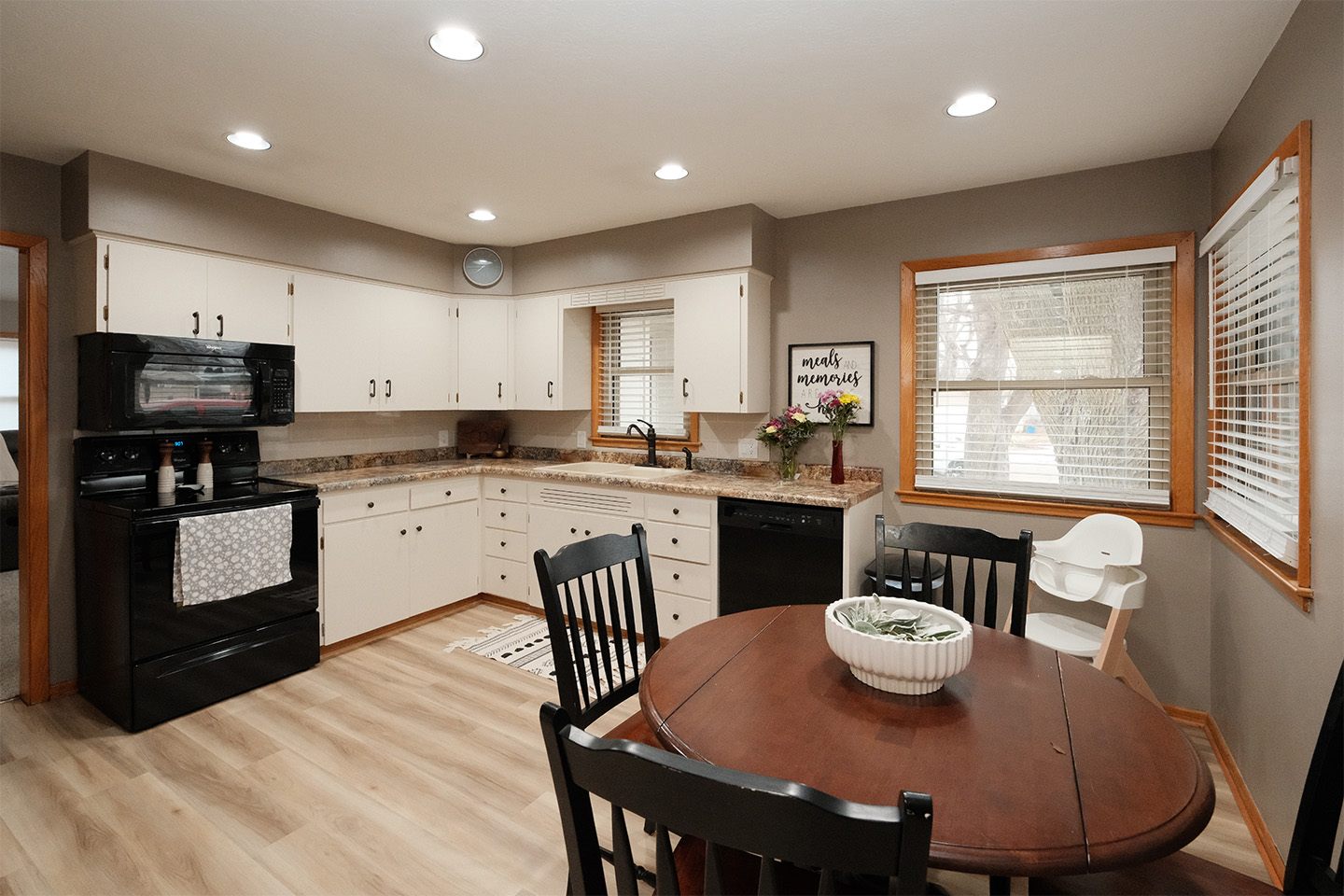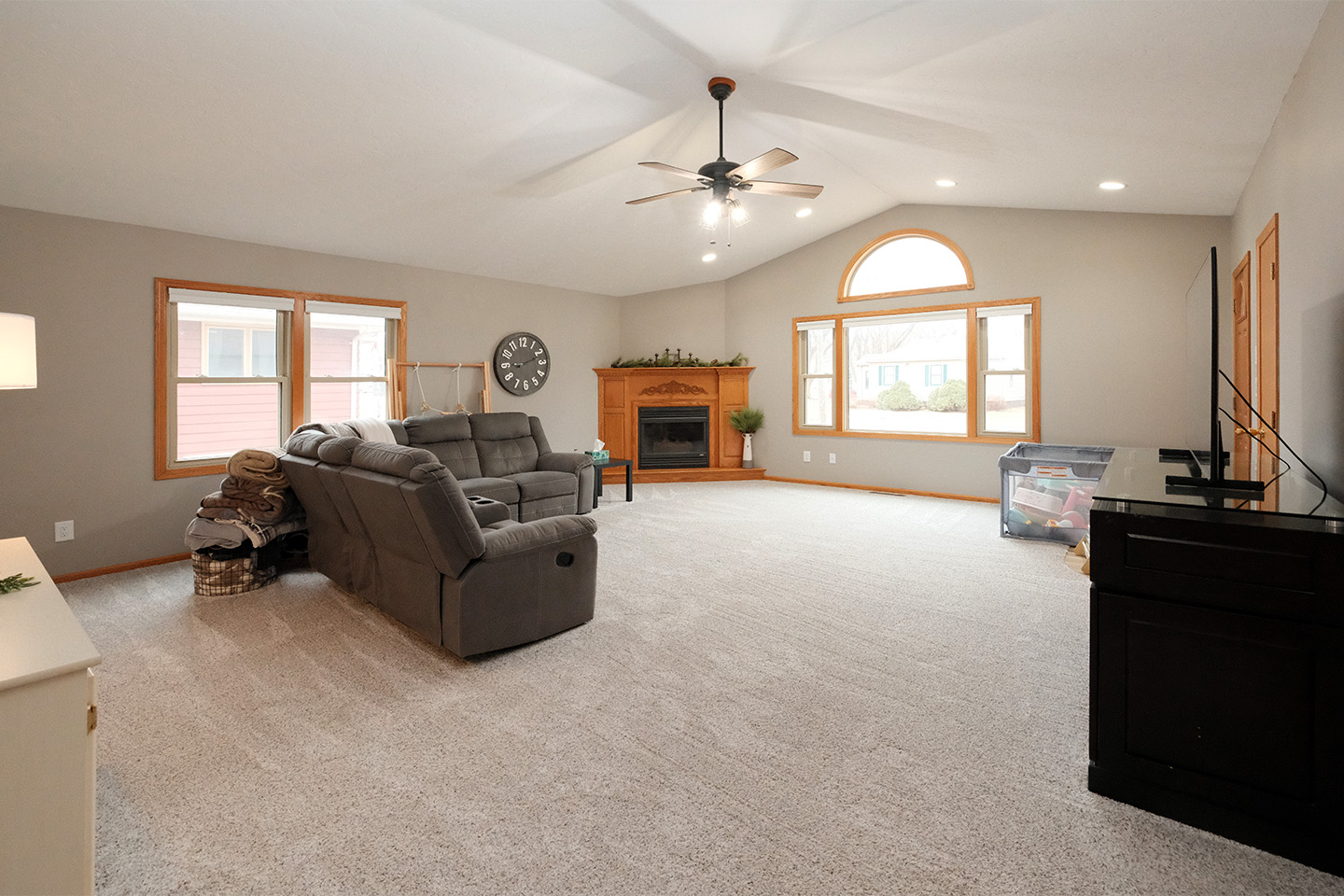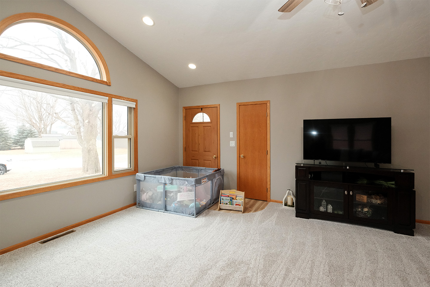This beautifully updated ranch home in Hospers offers the perfect blend of comfort, space, and functionality. The open and inviting main floor living room features vaulted ceilings and a cozy gas fireplace, ideal for both relaxing and entertaining, along with a functional kitchen and dining space. Two bedrooms, a full bath with whirlpool tub, and abundant storage provide everyday convenience. The partially finished basement expands your living space with a bathroom, laundry area, living room, and non-egress bedroom—perfect for guests, a home office, or recreation. An oversized garage (984 sf) offers endless possibilities for hobbies, storage, or additional vehicles. Cozy, charming, and located in a well-established neighborhood, this home is move-in ready!