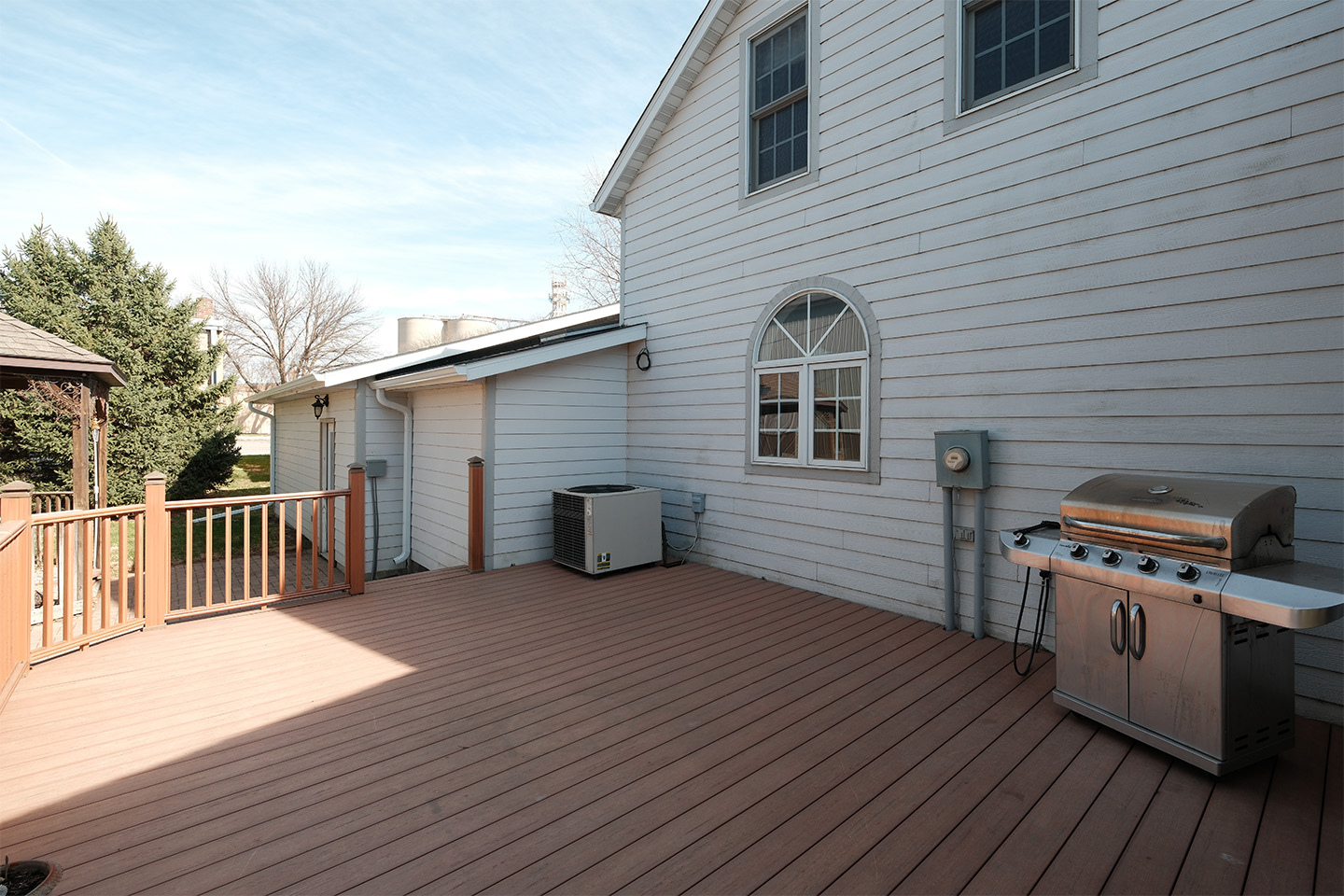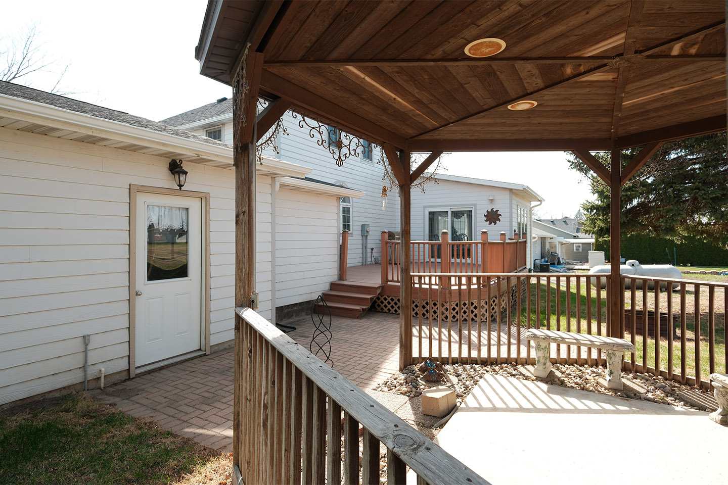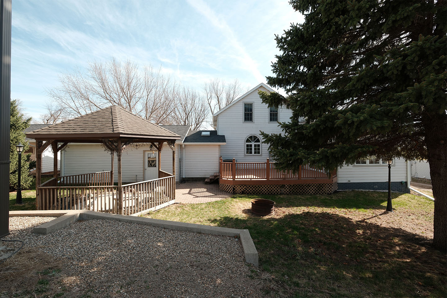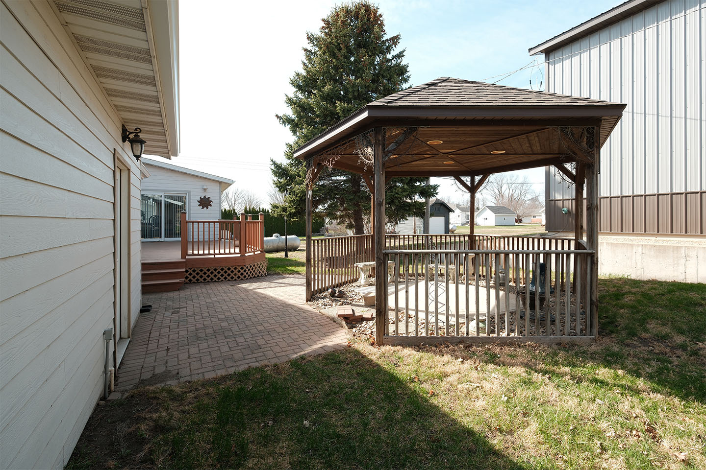 Enjoy outdoor living with a backyard gazebo wired with speakers and ready for a future hot tub, plus a propane line already connected directly to the grill—perfect for easy entertaining.